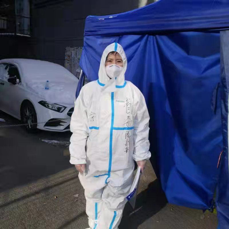 台胞杜迎梅在卡点执勤